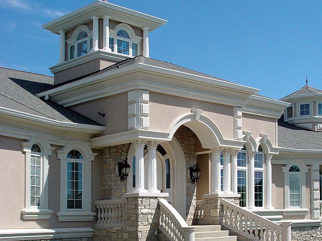 Лепнина из Архитектурного бетона украсит фасад любого дома и сделает его уникальным и оригинальным. Колонны и ордена, карнизы и молдинги, кронштейны и картуши, дверные и оконные обрамления, панно, наличники и замковые камни, балюстрады и балясины, декоративные панно - вот далеко не полный перечень архитектурных деталей и возможностей для декорирования фасадов ведь то, как выглядит лицо дома - зависит только от предпочтений и вкусов заказчика и архитектора. Наши специалисты имеют огромный опыт в оформлении фасадов, от разработкипроектной части, до выполнения комплекса монтажных работ.