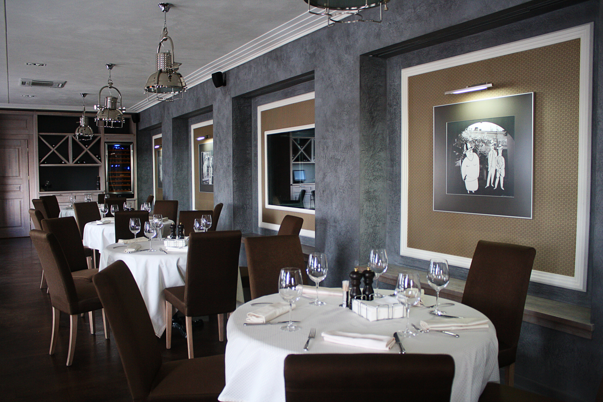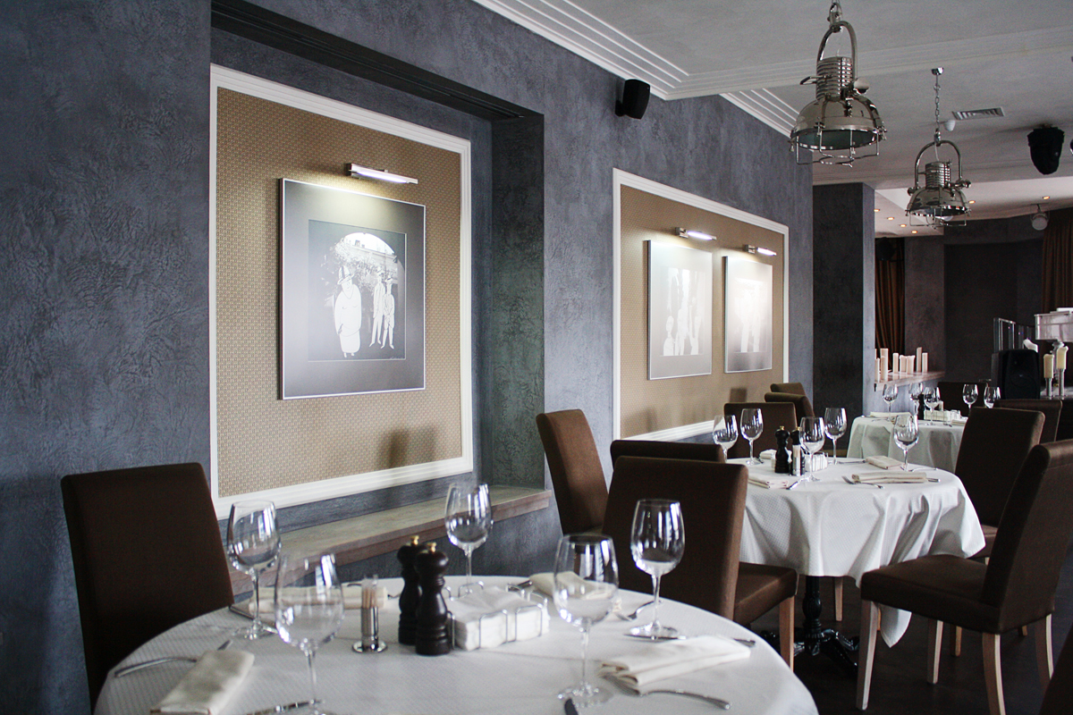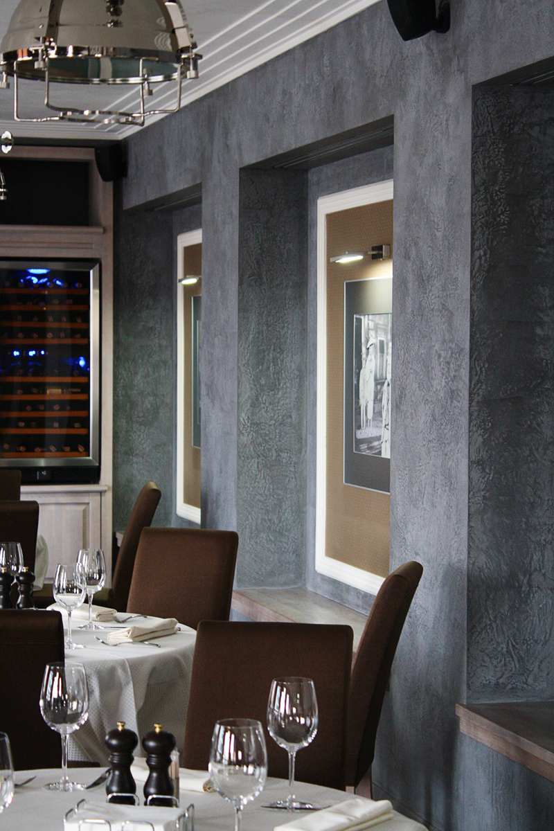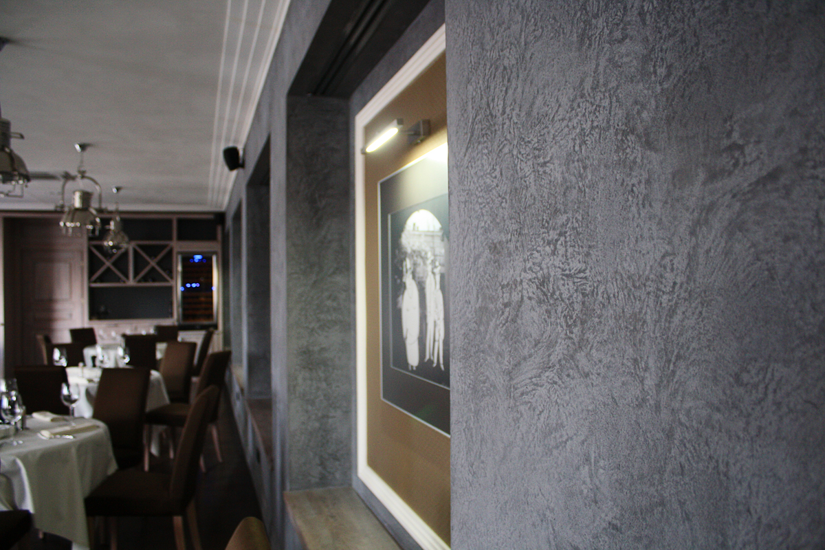 Пример применения декоративного материала Тоскана ТМ Эльф в интерьере ресторана «БабельФиш» г. Одесса